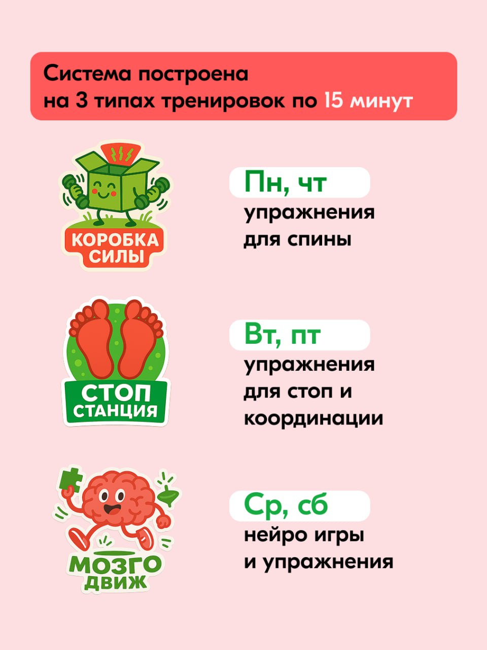 ✅ 9 тренировок по 25−40 минут в формате «смотри и повторяй»